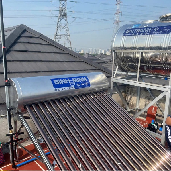 Lắp đặt thực tế Máy nước nóng mặt trời Bình Minh tại Hồ Chí Minh