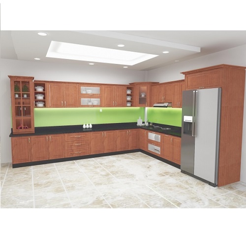 tủ bếp chữ L gỗ xoan đào tự nhiên sang trọng​