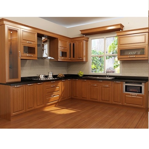 tủ bếp chữ L gỗ xoan đào tự nhiên sang trọng​